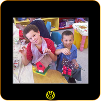BIRDHOUSES What fun it is to have an opportunity to build and paint a birdhouse to you're own liking. What's even better is when the children are following direction.